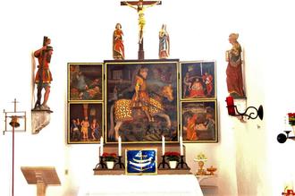 Die Hohenreicher Schlosskapelle St.Georg zählt zu den regionalen Schätzen unserer Region. So brachte man in Zusammenarbeit mit dem Stadtarchivar Johannes Mordstein und Cornelius Brandelik einen informativen Führer heraus. Seit der Sanierung 2022/23 erstrahlt die Hohenreicher Schlosskapelle in neuem Glanz. Verantwortlich für die umfangreiche Innen und Außensanierung war die Stadt Wertingen. Dass es zur Sanierung des Kleinodes kam, war auch Bliensbachs Pfarrer Alois Roßmanith mit Beteiligt, der immer wieder den Anstoss dazu gab. Das wertvollste ist der Flügelaltar mit dem Bildnis der Heiligen Georg..