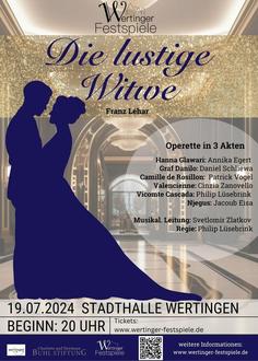 „Die lustige Witwe“ ist eine Operette in 3 Akten von Franz Lehár. Es ist seine erfolgreichste und bekannteste Operette. Die Uraufführung fand am 30. Dezember 1905 im Theater an der Wien statt und wurde von 1905, bis zum Todestag des Komponisten 1948 schon über 300.000 Mal aufgeführt und mehrfach verfilmt. Die Verfilmungen der Operette waren 1952 unter anderem mit Johannes Heesters und 1962 mit Peter Alexander als Graf Danilo.