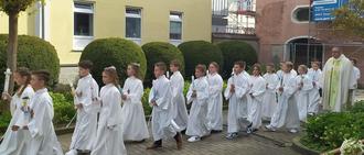 Kürzlich wurden in der Pfarreiengemeinschaft Bliensbach und Wertingen die ersten Kommunionfeiern begangen. Während in Laugna 10 Kinder, 6 Mädchen und vier Buben, die aus Osterbuch, Modelshausen und Laugna stammten, feierlich in das Gotteshaus einzogen, waren es in Wertingen 30 Kinder. Das Thema der Erstkommunion lautete: “Jeusus Christus, Brot des Lebens“, du gehst mit, das Wochen zuvor beim Kommunionunterricht mit den Kindern auf den großen Tag vorbereitet wurde. Weitere Kommunionfeiern fanden in der Pfarrgemeinschaft Wertingen am Sonntag, 20.April in Binswangen mit fünf Kindern und am 21.April in Gottmannshofen mit 21 Kindern statt: In der Pfarreigemeinschaft Bliensbach fand am Sonntag, 21.April die Erstkommunionfeier für 6 Mädchen und 5 Buben. (in der Pfarrkirche Prettelshofen für die Kinder aus Bliensbach und Prettelshofen) statt.