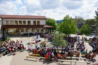 Aus den Ortsteilen der Gemeinde zogen die Mitglieder der Pfarreiengemeinschaft Altenmünster-Violau in einer Sternwallfahrt in den Zentralort, um dort gemeinsam den Festgottesdienst zum Hochfest an Christi Himmelfahrt im Schulhof zu feiern. Den Songtext „Abschied ist ein scharfes Schwert“, von Roger Whittaker nahm Pfarrer Thomas Pfefferer als „Aufhänger“ für seine Ansprache. „Wie die Himmelfahrt von Jesus Christus ein Abschied war, so ist auch unser Leben von Abschieden geprägt“, stellte er den Vergleich zur Gegenwart her. Bedauerlich ist, dass sich in der heutigen Zeit auch viele Christen von der Kirche verabschieden. „Umso wichtiger sei es, dass wir hier heute zusammenkommen und ein Zeichen setzten für unser Christsein“, ermunterte der Pfarrer die Besucher. Vertreter der jeweiligen Pfarreien stellten das Thema „Frieden“ in den Mittelpunkt ihrer Fürbitten. Im Anschluss an den Gottesdienst versorgte der Musikverein Altenmünster, der auch die musikalische Gestaltung der Feier übernahm, die Pilger noch mit Speis und Trank.