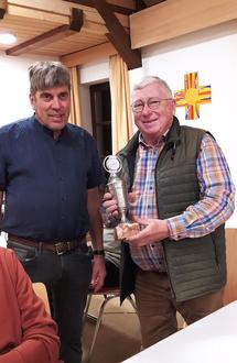 Zweiter Vorsitzender Hans Reiter(links) überreicht dem Sieger Alfred Kapschak den Wanderpokal.