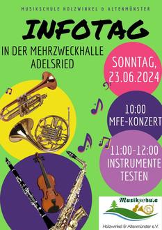 Komm zum Infotag der Musikschule Holzwinkel und Altenmünster und teste die verschiedenen Instrumente, lerne die Lehrkräfte kennen und komme mit den Vertretern unserer heimischen Musikvereine ins Gespräch.