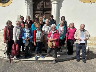 Entdecken, genießen und entspannen am Hahnenkamm das konnten die Teilnehmer*innen bei der meditativen Wandertour des Frauenbundbezirks im westlichen Landkreis Augsburg und Zusamtal. Wie immer wurde umweltbewusst mit dem ÖPNV gefahren. Uwe Steinlein übernahm den Gepäcktransport und unter Leitung der erfahrenen Wanderleiterin Heidi Steinlein wurden drei Tagesetappen begangen. Vom Bahnhof Otting ging es am ersten Tag in die Fuchsien- und Wallfahrtsstadt Wemding, die zum UNESCO Global Geopark Ries gehört und dann weiter zu einem der meistbesuchten Marienwallfahrtsorte Bayerns, der Wallfahrtsbasilika Maria Brünnlein. Der zweite Wandertag führte von Maria Brünnlein auf gut ausgeschilderten Wegen zum Hahnenkammsee. Umgeben von saftigem Grün und sanften Hügeln ist er ein Geheimtipp für Erholungssuchende. Weiter ging es dann zur romantischen Ruine der Katharinenkapelle, die als Wahrzeichen über Hechlingen thront. Von hier aus hatte man einzigartigen Ausblick über die Hügel des Hahnenkamms bis in das Ries. Abwärts ging es dann durch einen der Hechlinger Hohlwege mit 9 m hohen Wänden, über Jahrtausende entstanden im Sandstein des Hahnenkamms und von atemberaubender Schönheit. Der letzte Wandertag führte über den BMW Motorrad Enduro Park, der europaweit als eine der Top-Adressen für Enduro-Begeisterte gilt. Hier gab es einige Erklärungen und man konnte einzelnen Fahrtrainings zusehen. 30 Hektar ist das Areal groß. Begleitend gab es jeden Tag meditative Impulse, Lieder, Gebete und am Abend kulinarische Genüsse. Mit vielen schönen Eindrücken ging es per Zug wieder nach Hause.