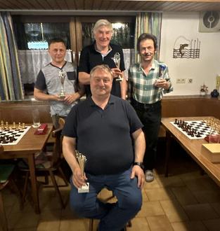 Die vor kurzen austragende Blitzschachmeisterschaft der „Zeller Schachspieler“ gewann souverän der Arzt Thilo Weibrich aus Wengen. Im Blitzschach ist in 10 Minuten eine Schachpartie gespielt, dies erfordert natürlich hohe Konzentration sowie Fingerfertigkeit. Dabei war Thilo diesmal als klarer Favorit gestartet und er gewann alle 8 Partien. Dafür gab es mit Vladimir Holzmann (Welden), Dr. Viktor Heimbuch aus Wertingen und dem Zusamzeller Franz Erhard drei Mitspieler, welche mit 5,5 Punkten den zweiten Platz teilten. „Zum Ritter der traurigen Gestalt“ avancierte diesmal Konrad Radinger, der mit 5 Punkten nur auf Rang fünf kam.