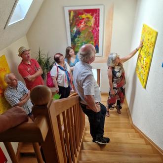 Unser Bild zeigt das Treppenhaus-Atelier der Künstlerin Roswitha Lenz beim Tag des offenen Ateliers 2024.