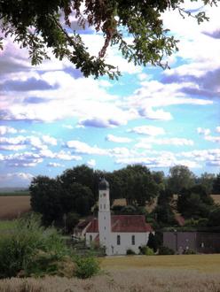 Idyllisch zeigt sich die Kirche von Wengen, Gemeinde Villenbach, hoch oben vom Berg aus aufgenommen. Hier wird Ende August das Ottilienfest begangen.