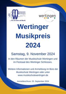 Neuauflage des erfolgreichen Wettbewerbs für alle Schüler der Musikschule Wertingen und für Musiker mit Hauptwohnsitz in Wertingen. Die Anmeldefrist endet am 25. September 2024.