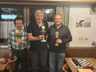 Die Vereinsmeisterschaft im Schachclub Zusamspringer zog sich diese Saison seit Oktober dahin, doch kürzlich fand die letzte Partie statt. Da im Modus jeder gegen jeden gespielt wurde, war der Wertinger Peter Müller bereits im April fertig und kam mit respektablen 7 Punkten aus 10 Kämpfen auf Rang vier. „Aufs Podium“ schaffte es mit 8 Zählern Konrad Radinger aus Ellerbach, als dritter. Mit je 9 Punkten gab es diesmal mit Dr. Viktor Heimbuch, dem Wertinger Hautarzt und Franz Erhard dem Zeller Lokalmatador zwei Sieger. Beim letzten Schachfrühschoppen wurde beschlossen wieder ein A-Klassenteam, sowie eine Mannschaft in der B-Klasse in Nordschwaben an den Start zu schicken.