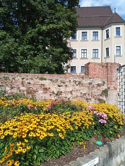 Wertinger Schloss vor Blumenkulisse