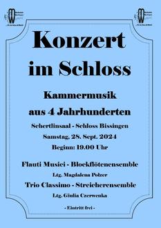 Im Schertlinsaal des Bissinger Schlosses erklingt Kammermusik aus 4 Jahrhunderten.