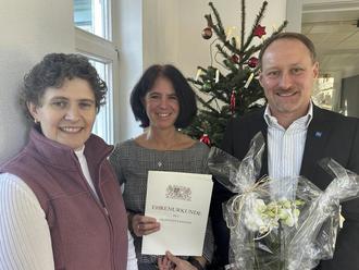 Am 16.12.2024 konnte im Rathaus der Verwaltungsgemeinschaft Weitnau eine Mitarbeiterin für ihre langjährige Tätigkeit geehrt werden. Nicole Simion ist seit nunmehr 25 Jahren im öffentlichen Dienst beschäftigt. Nach ihrer erfolgreich abgeschlossenen Ausbildung zur Reiseverkehrskauffrau, die sie bei der Stadt Kempten abgeschlossen hat, wechselte Nicole Simion im Jahr 2015 in das Tourismusbüro nach Missen-Wilhams. Schon während ihrer Tätigkeit bei der Stadt Kempten konnte sie umfangreiche Erfahrungen sammeln, die nun seit fast 10 Jahren der Gemeinde Missen-Wilhams zugutekommen. Nicole Simion erfüllt ihre Aufgabe mit viel Engagement und Herzblut und steht sowohl den Gästen als auch den Gastgebern mit Rat, Tat und „Insiderwissen“ zu Seite.