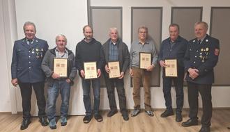 Sie erhielten die Würdigung für ihr langjähriges Engagement und ihre Anerkennung an die ehrenamtlichen Einsatzkräfte. Er betonte, die Bevölkerung könne sich jederzeit auf die Feuerwehr verlassen.