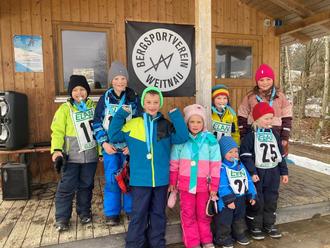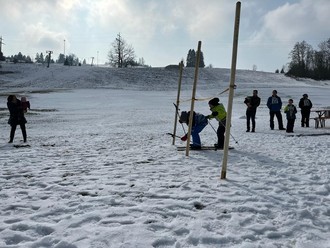 Am 4. März hielt der Bergsportverein Weitnau seine ersten Vereinsmeisterschaften ab. Der Planung ging die Frage voran, ob man für ein klassisches Rennen (Ski / Snowboard) je nach Schneelage ein geeignetes Gebiet aussuchen solle oder alternativ ein Programm für eine Austragung in Weitnau unabhängig der Schneelage. Entschieden hatte sich das Vorstandsgremium für die letztere Option. Als Verein bemüht sich der BSV das Beste für eine zukünftige Nutzung des Skilifts in Weitnau herauszuholen. Mit diesem Gedanken wollen wir unsere Vereinsaktivitäten nicht zu 100% abhängig vom Schnee machen. Herausgekommen ist eine kleine aber feine Veranstaltung. Sieben Kinder und 8 Erwachsene traten an einen Parcours gegen die Uhr zu bezwingen. Angetreten wurde je in Zweier-Teams die gemeinsam auf den eigens für den Lauf gebauten Holzski ihre Geschicklichkeit und Zusammenarbeit als Team zeigen mussten. Da der komplette Parcours noch auf einer Schneefläche aufgebaut war, passierte manche Bewegung schneller als gewünscht. Zuerst ging es unter einem gespannten Seil zu einem Pfosten, an dem eine Glocke geläutet werden musste. Als nächste Station musste eine Holzwippe überwunden werden. Erst nachdem ein Schokokuss auf einem Tisch ohne Hände komplett verspeist war, durfte der Rückweg zum Start angetreten werden. Für die Kinder gab es bei der Siegerehrung jeweils eine Medaille. Das Siegerteam der Erwachsenen durfte einen Wanderpokal nach Hause nehmen. Bei angenehmem Sonnenschein ließ man die Veranstaltung mit Grill und Getränken ausklingen. Fest steht schon, dass die Vereinsmeisterschaften als regelmäßige Veranstaltung etabliert werden soll und damit der Termin langfristiger feststeht. So können hoffentlich kommendes Jahr mehr Teilnehmer antreten.