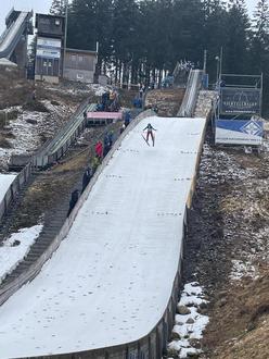 Eigentlich hätten die Athleten bereits am Freitag trainieren sollen, doch technische Probleme verzögerten den Start. Umso spannender wurde es am Samstagmorgen bei frostigen -8°C. Auf der K64-Schanze dominierten die Nachwuchstalente: In der Klasse S13 setzte sich Niklas Kringe (SC Oberstdorf) mit Sprüngen auf 65 und 59,5 Meter durch. Silber holte Lokalmatador Finn Weigel (SC Bischofsgrün 1909 e.V.) vor Arik Strein (SC Partenkirchen).