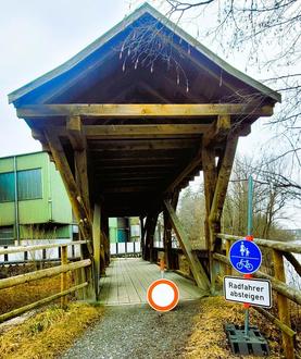 Ab ersten März ist es soweit: Die Holzbrücke über den Waltenhofener Bach an der Einmündung in die Iller ist komplett gesperrt, für Radfahrer und Fußgänger geht nichts mehr! Die Brücke wird seit Jahren intensiv genutzt, sie ist im Zuge des Illerweges ein wichtiges Puzzleteil der lokalen und überregionalen Mobilität. Durch die Sperrung sind Fahrradfahrer nun zu einem fast 3,5 km langen Umweg gezwungen.