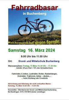 Schon lange zur Tradition geworden, findet auch dieses Jahr wieder ein großer Fahrradbasar in der Grund- und Mittelschule Buchenberg statt.