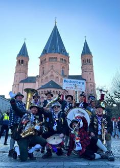 Die „Buchenberger Bazi´s“ können ein kleines Jubiläum feiern: Seit nunmehr 10 Jahren erleben die 12 Musikanten die Mainzer Fassenacht. Im Jahr 2015 nahm die Fastnachtsband dort das erste Mal am Rosenmontagszug teil. Ihr diesjähriges Motto „Wir Bazi´s spielen seit 10 Jahren zur Fassenacht für Mainzer Narren!“ wurde bei der Live-Übertragung im SWR-Fernsehen von den Moderatoren verlesen, als die Allgäuer an den Fernsehkameras vorbeimarschierten.