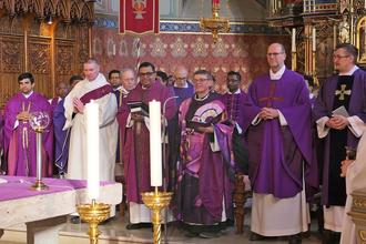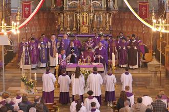 Die liturgische Feier wurde von Dekan Bernhard Hesse aus Kempten geleitet. Unterstützt wurde er von rund 30 Mitzelebranten, größtenteils indische Mitbrüder, die damit ihre Verbundenheit zu Pfarrer Sanoj zum Ausdruck brachten. Ebenso war eine große Anzahl von Ministranten aller Pfarreien zugegen.