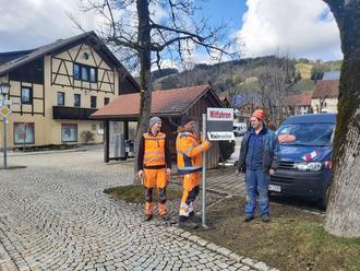 Der Bauhof Weitnau hat die Mitfahr-Schilder im Markt Weitnau aufgestellt. Konstruiert und hergestellt wurde die Mitfahr-Beschilderung von Ludwig Vogler stellvertretender Bauhofleiter in Weitnau. Von links nach rechts: Werner Keck, Ludwig Vogler, Bernhard Hipp.