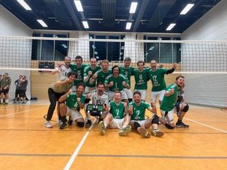 Die Weitnauer Volleyball Herren bejubeln ihren Sieg gegen den direkten Konkurrenten FTM Schwabing