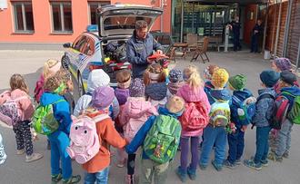 Missen-Wilhams – Auch dieses Jahr besuchten unsere Raketenkinder die Polizei in Immenstadt. Zuerst ging es auf die Straße, damit alle Kinder nochmal hörten und übten, wie man am sichersten über die Straße geht. Nach einem „Besuch“ im Gefängnis und einer stärkenden Brotzeit durften die Kinder noch das Polizeiauto anschauen und auch den Alarm einschalten. Es war ein toller Ausflug mit einer gelungenen Busfahrt. Vielen Dank an Herr Schlachter für die tolle und kindgerechte Darbietung.