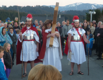 Herzliche Einladung an Alle zum Miterleben der 12 Stationen der "Lebendigen Passion" rund um die Pfarrkirche St. Stephanus in Hellengerst am Karfreitag, 7. April, 19.30 Uhr. Bei ungünstiger Witterung findet dies in der Kirche statt. Anschließend lädt der Pfarrgemeinderat zum Austausch bei Brot, Wasser und Wein ins Pfarrheim ein.