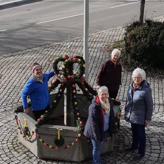 Möglich gemacht wird dies alljährlich durch das ehrenamtliche Engagement von Vertretern der kirchlichen Vereine. Für’s Schmücken des Brunnens und die vielen Stunden beim Kranzen gilt allen Helfern ein herzliches Dankeschön.