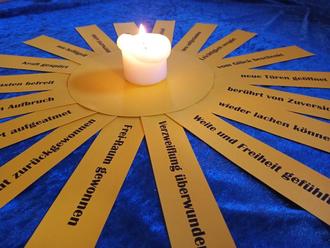 Gönnen Sie sich in der Offenen Kapelle eine Zeit der Stille und des Innehaltens. Ein Bodenbild zu Passion und Ostern lädt dazu ein, dem Leidens- und Auferstehungsweg Jesu entlang zu gehen. Dabei geben Texte und Impulsfragen Raum, eigenen Gedanken und Gefühlen nachzuspüren und in einer Handlung auszudrücken. z.B. Worte aufschreiben, Gegenstände ablegen.
