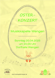 Die Musikkapelle Wengen lädt alle Bewohner und Musikbegeisterten herzlich zu ihrem traditionellen Osterkonzert ein. Die Veranstaltung findet am Ostersonntag, den 20. April 2025 um 20 Uhr, in der Dorfhalle Wengen statt.