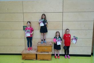 Die Sensation sollte für den TSV Buchenberg aber in der jüngsten Altersklasse der Mädchen geschehen (8-jährige und jünger). Hier gingen mit Juna Fritz und Maja Nold gleich zwei aussichtsreiche Talente der Buchenberger Jugendarbeit an den Start. Nach der Gruppenphase kamen beide weiter in die K.O.-Runde, in der sie beide auch ihre Viertelfinals gegen zwei Favoritinnen aus Durach und Irsee gewinnen konnten. Dann kam es bereits im Halbfinale zum vereinsinternen Duell der beiden Buchenbergerinnen. Maja Nold ging an diese Tag als Siegerin hervor; Juna hatte den dritten Platz sicher.