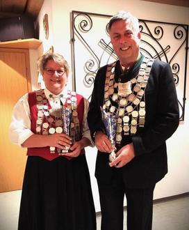 Zu Beginn des offiziellen Teils wurden zwei Mitglieder für ihre langjährige Treue geehrt. Waltraud Bickel ist seit 50 Jahren und Paul Klatt seit 60 Jahren dabei. Beide erhielten zum Dank eine Ehrenurkunde sowie eine entsprechende Anstecknadel des Bayerischen Sportschützenbundes ausgehändigt. Nach den Siegerehrungen in den einzelnen Disziplinen wurde mit Spannung erwartet, wer die neuen Schützenkönige sind. Bei den Damen konnte Waltraud Bickel das beste Blattl erzielen. Ihr reichte ein 15,6-Teiler zur Schützenkönigin. Und bei den Herren wurde es der erst seit diesem Jahr aktive Schütze Jörg Steiger, der diese Würde mit einem 4,7-Teiler errang. Beim abschließenden Königswalzer ließen sich die neue Königin und der neue König gebührend feiern.