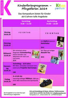 Töpfern eines eigenen Notizhalters, filzen süßer Bleistifttiere oder Upcycling Nähkurs bei dem eine Jeanshose zu einer Sporttasche verarbeitet wird. Auch für die technikbegeisterten Kids ab 8 Jahren haben wir, was ganz Besonderes vorbereitet.