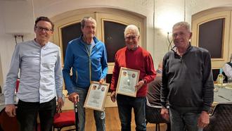 Auf dem Bild sind von links Stefan Maier, 2. Vorsitzender, Hans Rist, Georg Singer und Josef Immler, 1. Vorsitzender