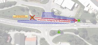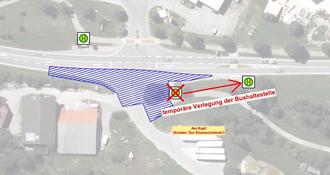 Da für die Errichtung der neuen Ampelanlage am Knotenpunkt B 12 / Peter-Früh-Weg / Galtenbrunnerweg die derzeit vorhandene Ampelanlage demontiert werden muss, ist in diesem Bereich kein sicheres Queren der B 12 für Fußgänger mehr möglich. Aus diesem Grund werden die beiden Bushaltestellen ab Dienstag den 29.04. nicht mehr angefahren. In Abstimmung mit dem zuständigen Busunternehmen werden die Bushaltestellen für diese Zeit temporär in die Straße „Am Nellenberg“ verlegt. Durch die Unterführung im Bereich der B 12 / Sonneckstraße kann ein sicheres Queren der Bundesstraße, vor allem für die Schulkinder, gewährleistet werden (siehe Abbildungen LP 1 – LP3).