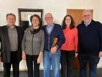 Zum 80. Mal seit 1973 verbrachte Herr Dieter Exner mit seiner Familie den Urlaub auf dem Ferienhof Tannheimer in Eschach. Für seine langjährige Treue bedankte sich Bürgermeister Toni Barth mit einem Gutschein und einer Flasche Buchenberger Sekt.