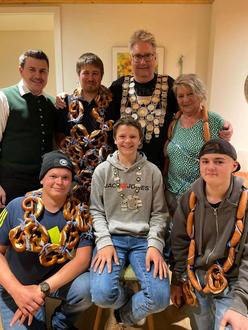 Anschließend fand die mit Spannung erwartete Krönung der neuen Schützenkönige statt. Der bisherige Jugendkönig Leo Möslang konnte seinen Titel mit einem 101,4 Teiler verteidigen. Wurstkönig wurde Elias Jörg (120,7 Teiler) und Brezenkönig wurde Nico Möslang (178,9 Teiler).