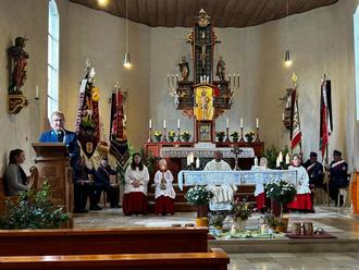 Zunächst begleitete die Musikkapelle Sibratshofen, unter der Stabführung von Rosa Rietzler, die Prozession aus den Fahnenabordnungen der Gemeindefeuerwehren, zur Pfarrkirche St. Wendelin. Dort fand um 18:00 Uhr die festliche „Floriansmesse“ statt, welche durch unseren Pfarrer Biju zelebriert wurde. Die musikalische Umrahmung bildete die Musikkapelle mit der „Musikantenmesse“. Vorstand Patrick Fliegel betonte in seiner Ansprache am Schluss des festlichen Gottesdienstes, die vielfältigen und wichtigen Aufgaben der Feuerwehr und setzte vor allem auch auf den Zusammenhalt und die gegenseitige Unterstützung der Wehren im Gemeindegebiet.