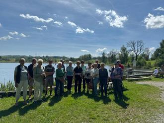 Der Kemptner Osten war bei bestem Wetter das Ziel der diesjährigen Frühlingswanderung. 17 Enzianer starteten vom Lohmühltobel durch den Engelhaldepark über den „Weg der Bäume“ zum Bachtelweiher. Dieser wurde umrundet, an den Schrebergärten vorbei durch die „Ludwigshöhe“, zurück zum Park, wo man noch im Kiosk einkehrte. Der 12 Ha große Park (ehemals eine Kiesgrube) wurde 1989 vom damaligen Oberbürgermeister Josef Höß als „grüne Lunge“ feierlich eröffnet! Der Bachtelweiher war bis zum Bau der Eisenbahnlinie Mitte des 19.Jahrhunderts doppelt so groß, ein „Standgewässer“, doch bei jeder Jahreszeit einen Spaziergang wert. Es war ein wunderschöner Spaziergang und für viele was „Neues“.