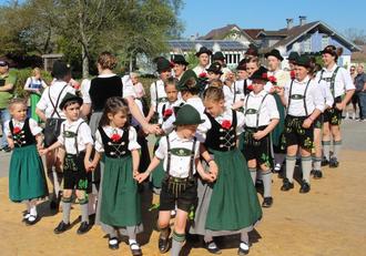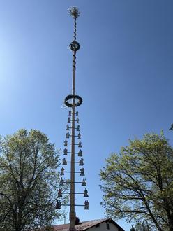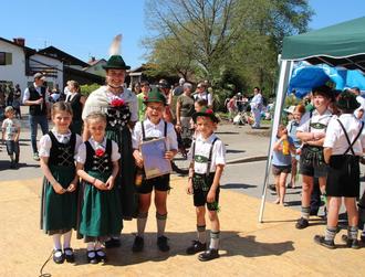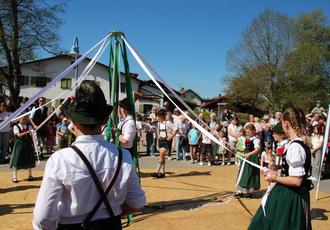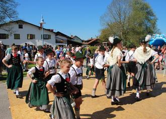 Unter Regie des Trachten- und Heimatvereins D`Vorälpler wurde mit großem Publikum der Maibaum im Dorfpark aufgestellt. Stolze 35,44 m misst der prächtige Baum, der von den Bayerischen Staatsforsten gespendet wurde. Viel Unterhaltung und Programm war bei strahlendem Sonnenschein geboten: Die Jugendgruppen der Vorälpler zeigten ganz traditionell Tänze und Plattler; als Höhepunkt den Bandltanz. Christina Hohl und Simon Sonnenwald unterhielten mit Stücken auf der Steirischen und die Gaiselschnalzer waren aktiv. Kinder tummelten sich in der Hüpfburg und die Boule-Bahn des Deutsch-Französischen Freundeskreis durfte zum ersten Mal bespielt werden.