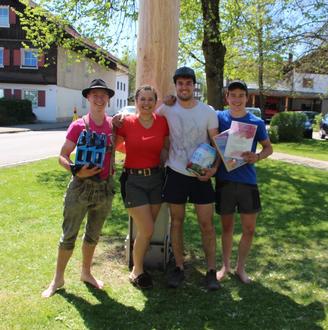 Gewinner des Maibaums Korbinian mit den Glücksfeen Marie, Charlotte und Lukas