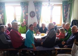 Trotzdem fanden sich unter dem Weitnauer Maibaum 16 Wanderer zusammen, die sich zunächst in Fahrgemeinschaften zum Parkplatz Tobelsäge bei Schwarzerd zusammentaten. Von Heinz Peuker und Frank Bertling geführt, wurde dann nach Hochberg und in einer Moorrunde rund um Freitags gewandert. Alle waren dann hocherfreut, dass sich in Schneiders Brotzeitstube ein großer Tisch im Warmen fand, um den herum sich die hungrigen Wandersleut bei Speis und Trank gemütlich aufwärmen konnten.