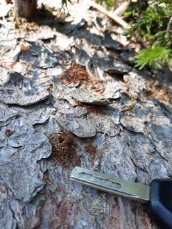 Bild 2: Das dunkle Bohrmehl ist ein klarer Hinweis darauf, dass ein Baum befallen ist.