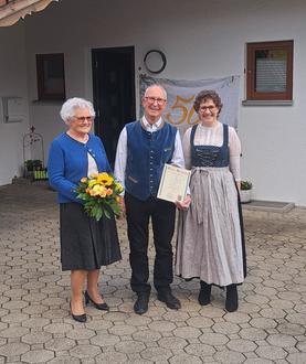 Balbine und Wolfgang Abt mit Bürgermeisterin Martina Wilhelm bei der Übergabe der Ehrenurkunde „Altbürgermeister der Gemeinde Missen-Wilhams“