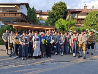 Das Jubelpaar mit Bürgermeisterin Martina Wilhelm und der Musikkapelle Missen-Wilhams