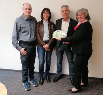 Von links Wolfgang Gassner, 2. Vorstand; Anne Schneider, Kassierin; Horst Allenzon, 1.Vorstand und Frau Monika Tullius, Sparkasse Allgäu Leiterin der Filiale in Weitnau