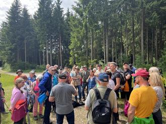 Einblicke in die Geschichte der Region bot Johann Jordan, Gemeinderat aus Waltenhofen. Er führte die Gruppe am ursprünglichen Wasserquellgebiet vorbei, das einst die Trinkwasserversorgung der Gemeinde sicherstellte. „Heute kommt unser Wasser aus der Fernversorgung, aber dieses Gebiet war so ergiebig, dass früher sogar die Aich mitversorgt wurde“, so Jordan. Die Teilnehmer staunten, wie wasserreich und sensibel die Landschaft ist – schwer vorstellbar, dass hier eines Tages tonnenschwere Fundamente für Windkraftanlagen stehen könnten.
