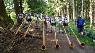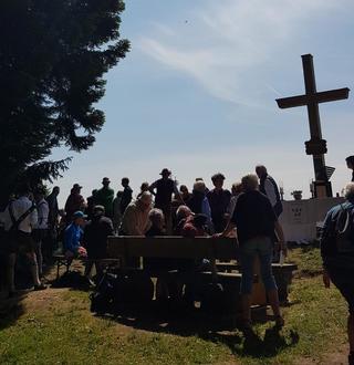 Lag es am neuen Kreuz? am Jubelpaar? am Wetter oder doch am Pfarrer? Vorstand Helmut Heurung war sichtlich gerührt von den zahlreichen Bergmesse Besuchern (ca. 250). Als erstes wurde das wirklich schöne neue Kreuz geweiht und dann zelebrierte Herr Pfarrer Erwin Ruchte in seiner unnachahmlichen Art die Messe wunderbar umrahmt von der Musikgruppe aus Ebratshofen unter der Leitung von Johann Osterberger. Im Rahmen der Bergmesse empfing das weit gereiste Diamantene Jubelpaar Jansen aus Grefrath nochmals den kirchlichen Segen. (Herr Jansen war selbst lange Jahre Mesner und Lektor). Für Vorstand Heurung waren die letzten Monate und Wochen sehr nervenaufreibend den das neue Kreuz wurde erst kurz vor der Bergmesse am Donnerstag, den 01.Juni auf der Kugel in einer spannenden Aktion montiert. In einer beispielhaften –Miteinand- Aktion wurde das Ziel freudig erreicht. Alle Mitglieder sowie die Vorstandschaft bedankt sich ganz herzlich bei den unersetzbaren Helfern: Fa. Hermann Hipold, Familie Helchenberg, Manuel Vogel und Fabian Stadelmann sowie bei Andreas Wolf für die spontane, uneigennützige Unterstützung und Hilfe. Das Kreuz an sich erinnert ja schon immer an unsere Verstorbenen Mitglieder, so nannte Vorstand Heurung stellvertretend für die letzten verstobenen Siegrid Adelgoss aus Sibratshofen die auch lange Jahre ihren Mann Siegfried bei der Brunnenpflege unterstützte (Dorfbrunnen der Bergkameradschaft Enzian). Nach der wunderschönen Bergmesse bei bestem Wetter verweilten noch viele Besucher bei einer schmackhaften Brotzeit. Auch der Familie Albrecht mit Rudolf und Marianne gebührt herzlicher Dank für die Pflege von diesem schönen „Flecken“.