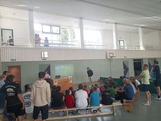 Am vergangenen Freitag stand für die Kinder und Jugendspieler, sowie für die Eltern und Erwachsenenspieler der Abteilung Tischtennis ein wichtiger Termin an: Der neue Sponsor Fabio Grisi stellte sich vor. Gemeinsam mit seiner Frau Kim Wallatis-Grisi führt er eine Filiale für Versicherungs- und Vermögensberatung. In einer kurzen Präsentation stellten die beiden sich, ihre Dienstleistung und ihr zukünftiges Engagement für den Buchenberger Tischtennissport kurz vor:
