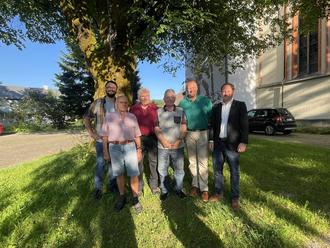 Von links: Christian Müller (1. Vorstand Tourismusverein), Hannes Oberhofer, Willi Stannecker, Severin Singer, Ulf Trabert (ehemals 1. Vorstand Tourismusvereins) und Bürgermeister Florian Schmid