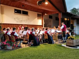 Am Freitagabend konnte die Musikkapelle Missen-Wilhams unter Leitung von Dirigent Bertram Hutter rund 50 Besucher zu einem Standkonzert im Kurgarten der Freizeitanlage in Missen begrüßen. Mit einem stimmungsvollen und kurzweiligen Programm von Marsch und Polka bis hin zu den größten Hits der 80ern unterhielten die Musikerinnen und Musiker ihre Gäste, die sich nach anderthalb Stunden Musikgenuss beschwingt auf den Heimweg machten.